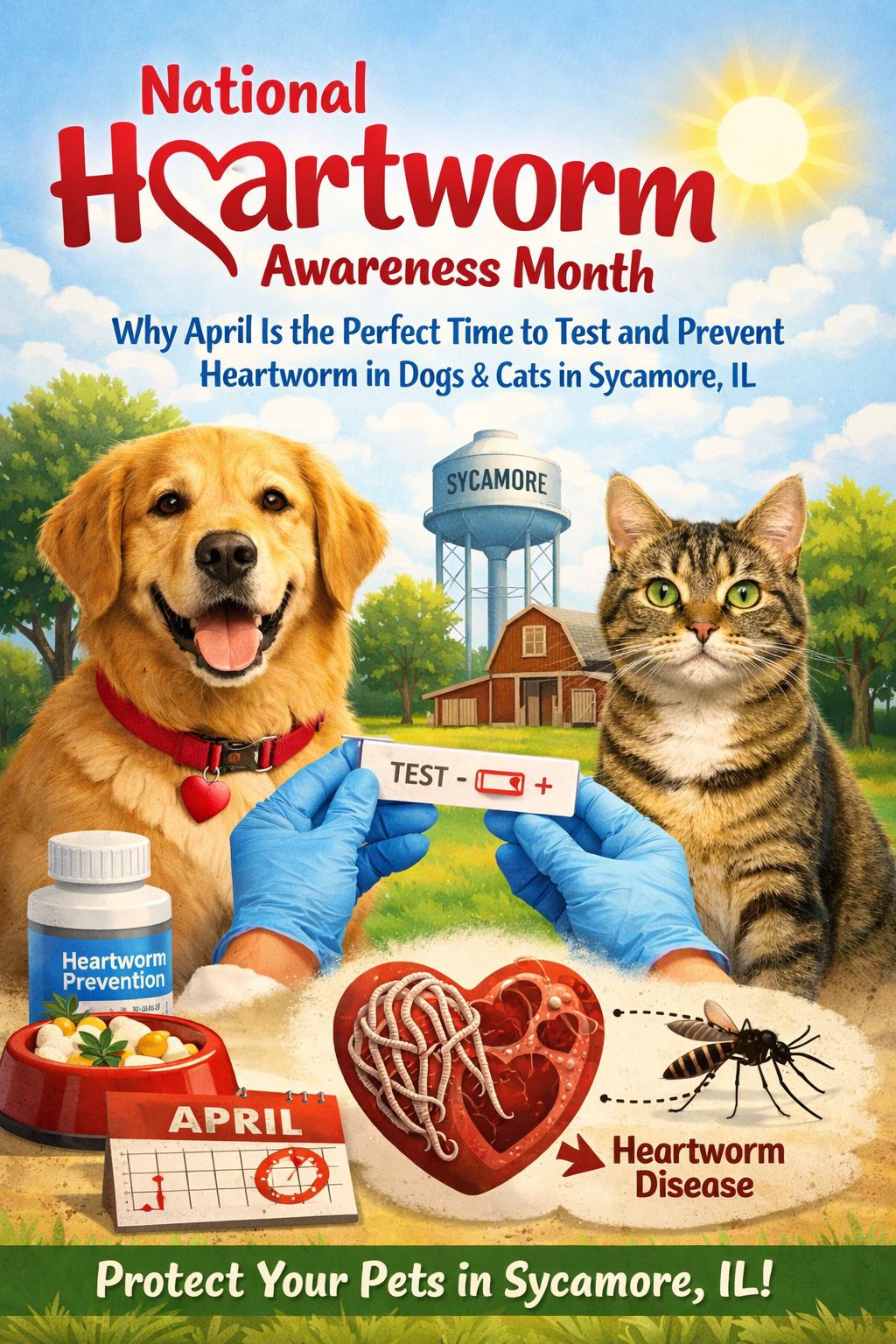 Why April is critical in Sycamore, IL: Mosquito activity ramps up as temperatures consistently hit 50–60°F and higher. In Northern Illinois (including DeKalb County), this often begins in late April or early May. The American Heartworm Society (AHS) reports heartworm transmission is possible wherever mosquitoes thrive—and with climate trends, the season is lengthening.